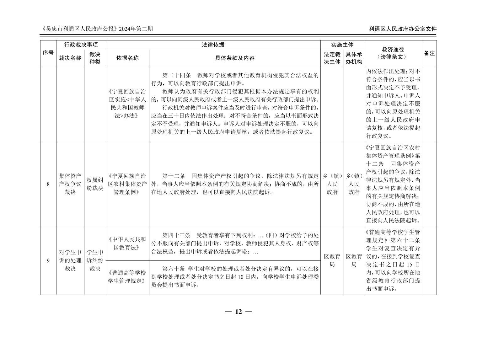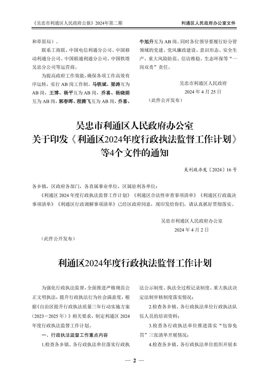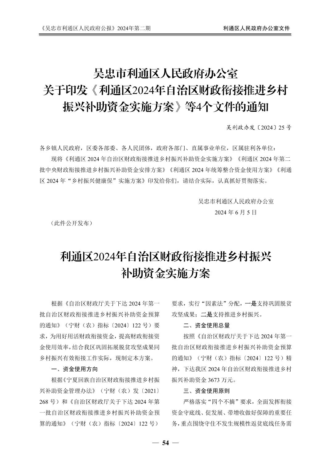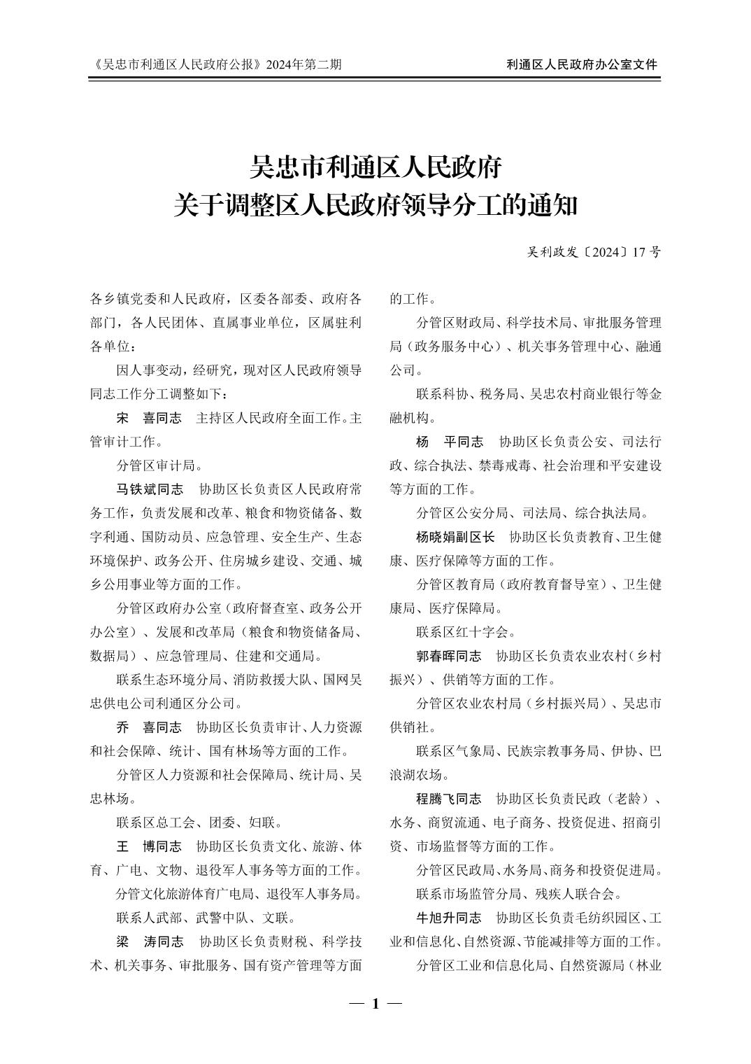 吴忠市利通区人民政府公报2024年第2期